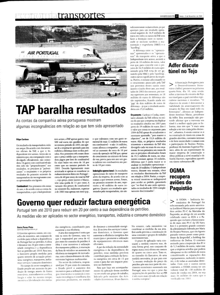 TAP baralha resultados Novembro 10, 2004Agosto 29, 2011Add a comment As contas da companhia aérea portuguesa mostram algumas incongruências em relação ao que tem sido apresentado… in: O Independente, Novembro 2004 Partilhar: Clique para partilhar no Facebook (Abre numa nova janela) Facebook Click to share on X (Abre numa nova janela) X Clique para partilhar no WhatsApp (Abre numa nova janela) WhatsApp Carregue aqui para enviar por email a um amigo (Abre numa nova janela) E-mail Carregue aqui para imprimir (Abre numa nova janela) Imprimir Gosto Carregando... Relacionado