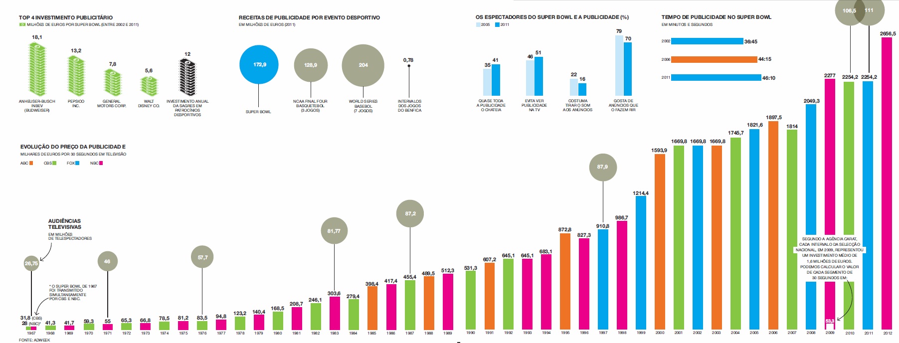 “O Super Bowl é o maior evento desportivo do planeta?” É uma das perguntas – ou afirmações – que os americanos mais gostam de colocar depois de orgulhosamente falarem nos mais de 100 milhões de telespectadores que assistem anualmente ao evento. A resposta é clara: não. Uma final do Mundial de Futebol atrai quase sete vezes mais telespectadores por todo o Mundo. Contudo, se mudarmos um pouco a questão, as coisas mudam de figura. “O Super Bowl é o evento desportivo mais caro do planeta?” Sem dúvida.