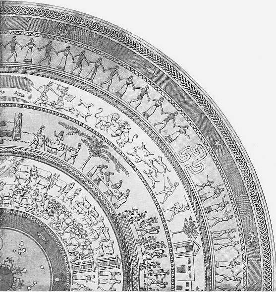 Tal como ao longo da Ilíada vamos tendo direito a algumas passagens que nos resumem o caminho e as razões de ser da guerra e das personagens, também no escudo de Aquiles encontramos um conjunto de passagens que provavelmente visam resumir a vida na Grécia, polvilhada sobretudo com situações que normalmente não associaríamos a Aquiles de tão pacíficas ou corriqueiras que são. Ora, ter imagens do dia-a-dia espalhadas no escudo que lhe salvará a vida [XXII – 289/291] parece algo bem distante de Aquiles. Basta recordar que foi o próprio filho de Tétis que, dado a escolher, preferiu ir a Tróia para gozar de grande fama, trocando tal feito por uma vida curta, quando em alternativa podia ter escolhido permanecer no seu país, longe da guerra, onde teria direito a uma vida longa mas sem glória. Ora ter cenas corriqueiras do dia-a-dia no escudo é assim no mínimo irónico e de difícil aceitação em relação à personagem em questão. Olhando à distância de vários séculos, é difícil não antecipar nesse mesmo escudo uma ampla evocação de feitos ou vitórias, tal como sucederá com Eneias.