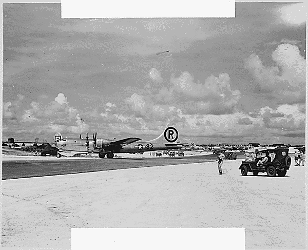 Os efeitos da bomba libertada sobre Hiroshima foram descritos pelos pilotos numa conferência de imprensa no dia seguinte: “A viagem correu sem incidentes. Largámos a bomba, por visão, exactamente às 9 e 15 (hora japonesa) e saímos da área dos objectivos o mais rapidamente possível para evitar o efeito da explosão. Uma terrível nuvem de fumo adensou-se sobre Hiroshima, ocultando-a inteiramente. Quando sentimos a explosão, foi como se sentíssemos mesmo junto a nós o rebentar da artilharia antiaérea. Estiemos sobre a área dos objectivos durante dois minutos”. Paul W. Tibbets foi o piloto da “SuperFortaleza” que no dia 6 de Agosto (no Japão, dia 5 nos EUA) lançou a primeira bomba atómica. Foi imediatamente condecorado com a Medalha de Voos Distintos dos EUA.